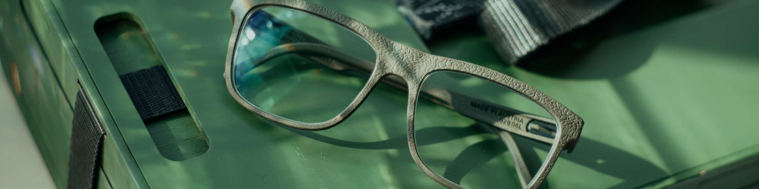Nachhaltige Materialien: Wir setzen auf umweltfreundliche Materialien wie Biopolymer aus Rizinusbohnen, Hölzer aus nachhaltiger Forstwirtschaft, natürliche Hornoptiken und edle Steine. Diese Materialien sind ressourcenschonend und biologisch abbaubar.